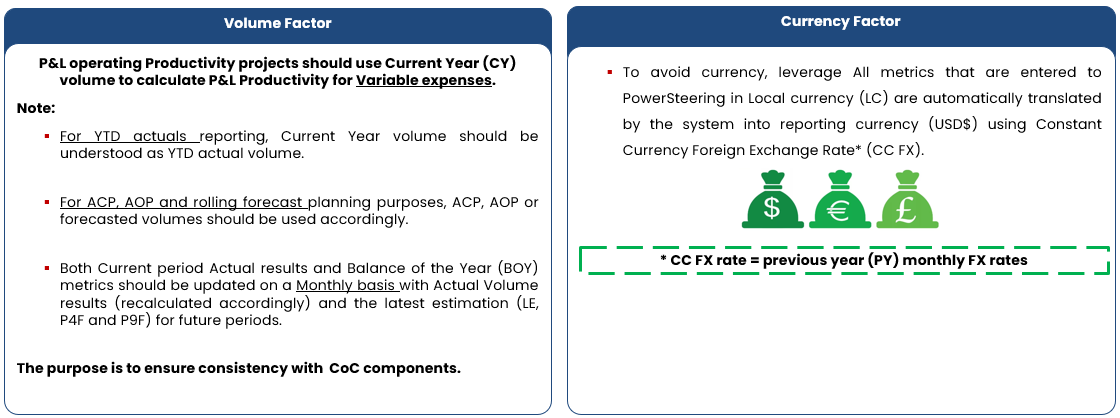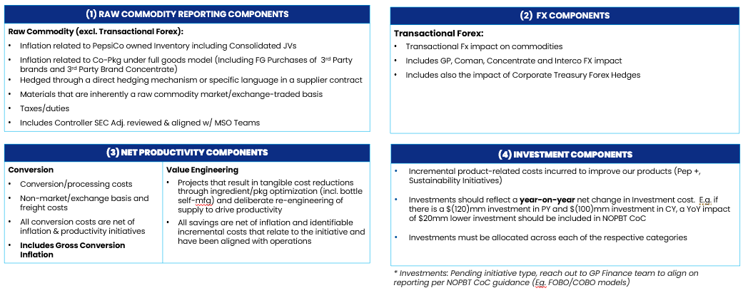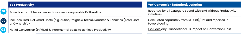 Translational FX (Constant Currency): All productivity should be reported in constant currency using PY Actuals at a Category level consistent with PepsiCo Productivity scorecards