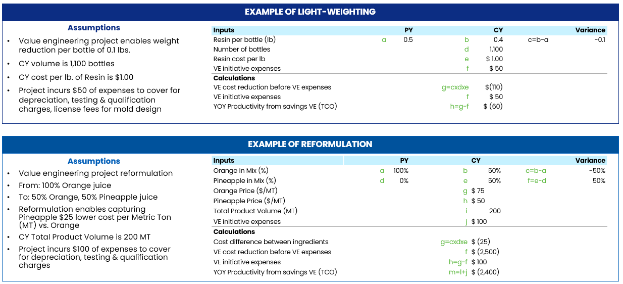 Directs: YoY Productivity Value Engineering Examples