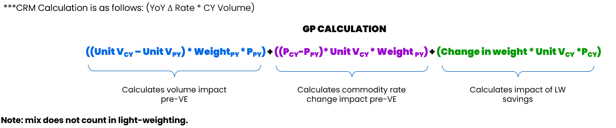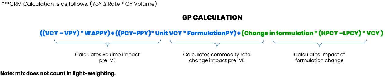 - Value Engineering: Change in YoY input material cost per unit X number of unites produced in current year