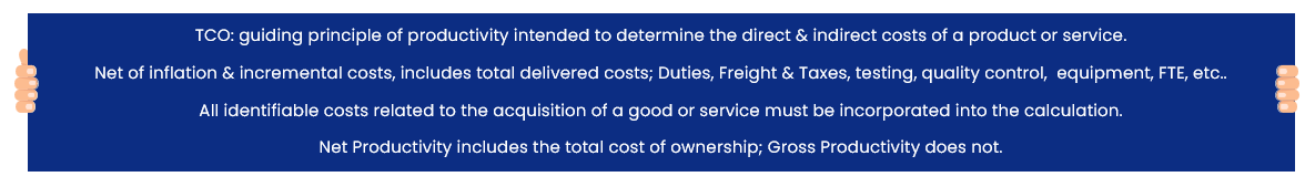 Productivity = (YoY Change in Cost Per Unit) x (Number of Units Purchased in the Current Year)
