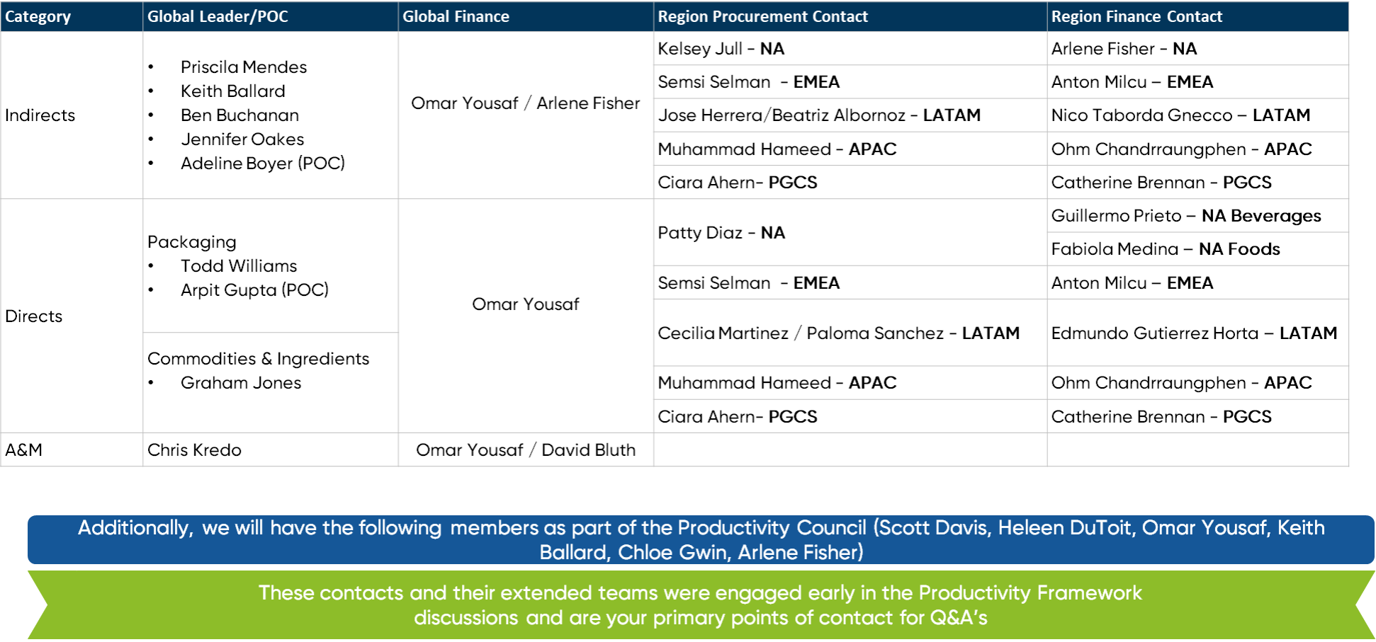 Productivity Support Group – Know Your Key Contacts